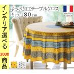 テーブルクロス 直径180cm 綿 撥水加工 花柄 ペイズリー柄 円形 フランス製 イエロー・ホワイト色 YN61001540