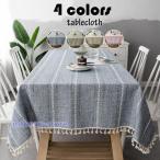 テーブルクロス 北欧 おしゃれ テーブルセッティング 布 四角形 長方形 ストライプ切り替え 綿麻 フリンジ裾 高級感 テーブルクロス 汚れ防止 家庭用 食卓カバー