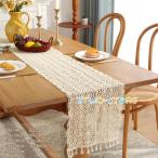 テーブルランナー レース編み 30X90cm テーブルコーディネート ベージュ 北欧風 おしゃれ タッセル付き マルチカバー テーブルセンター レストラン