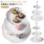 アフタヌーンティー ケーキスタンド 3段 デザートプレート おしゃれ (ホワイト+金模様B)