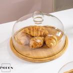 ケーキドーム ガラスドーム 木製トレイ 蓋付き ケーキスタンド デザートプレート チーズケース 焼き菓子保存 フルーツ皿 和菓子トレー パン皿 おしゃれ 北欧風 ナチュラル カフェ風 インテリア 食器 小物収納 ディスプレイケース