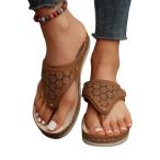 【並行輸入品】ヴィンテージウェッジヒールビーチサンダル レディース整形外科用サンダル サマーピープトゥスリッパ 中空フラワープラットフォームレザ