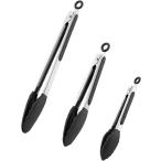 耐熱トング シリコン製 食品衛生法適合 調理用トング 先端がシリコン ステンレス 調理器具 キッチンツール (ブラック3本セット)