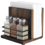 MyGift 素朴な木製ナプキンホルダー 塩コショウシェイカー3点セット ナプキンとスパイスボトルキャディ モダン ファームハウス サービングテーブル