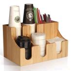 紙コップホルダー 木製 9列 カップディスペンサー 蓋収納付き Welina コーヒーカップ/紙コップ整理 シュガー/ストロー収納 店舗/オフィスに 省スペーススタンド