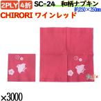 紙ナプキン 4折 2PLY 和柄CHIRORI ワインレッド 3000枚/ケース おしゃれ 紙ナフキン SC-24
