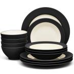 【並行輸入品】Noritake Colorwave Graphite 12 Piece Set, Rim in Black/Graphite