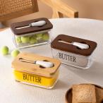 透明バターケース 保存容器 ナイフ付き バター バターボックス 木葢 陶器 ケース バター入れ バターナイフ ボックス キッチン調味料収納 容器 北欧