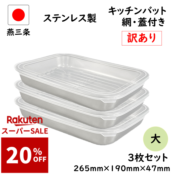 蓋付きステンレスバット・角型ザルセット 燕三条 日本製 バット 揚げ物 ケース バット&フタセット バット3個セット コンパクト