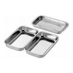 仔犬印 フラットエッジ角バット 3点セット 30枚取 (角バット・トレー・アミ) 18-8ステンレス バット トレイ あみ 食洗器対応 日本製 燕三条 本間製作所