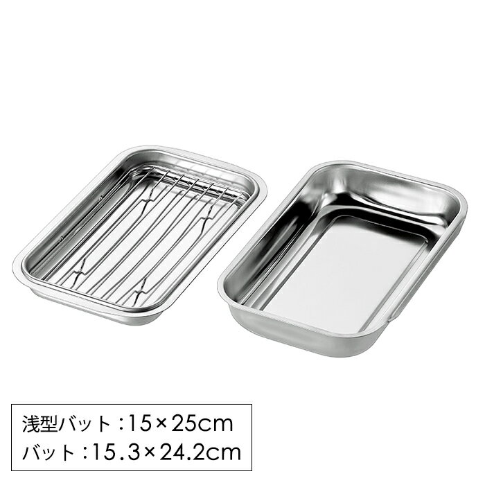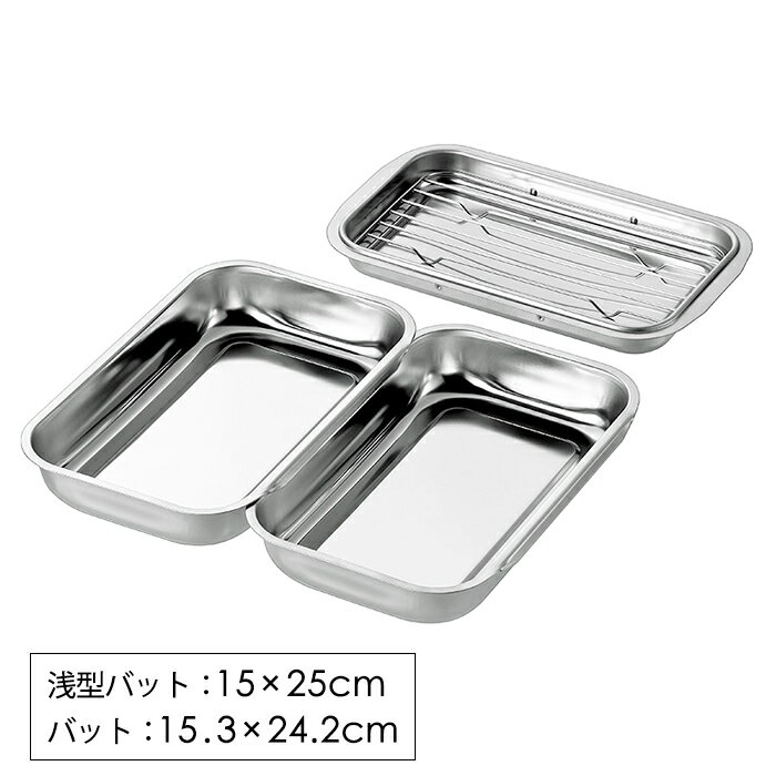 【楽天スーパーSALE10%OFF】バットセット 浅型バット アミ付き/角バット ステンレス 調理バット 日本製 燕三条 下ごしらえ キッチンバット ステンレス製 トレー ステンレスバット スクエア 水切り 油切り 揚げ物 天ぷら から揚げ 料理 調理 キッチン用品 便