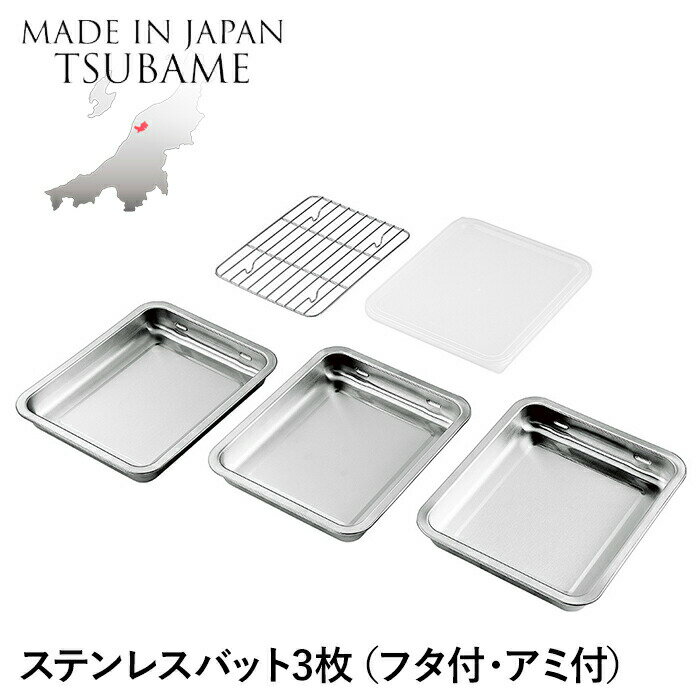 【楽天スーパーSALE10%OFF】バット ステンレス 角型 3枚 蓋付き アミ付き 角バット 重ねて収納 仕込み 下ごしらえ 調理 料理 食材 調理器具 燕製品 日本製