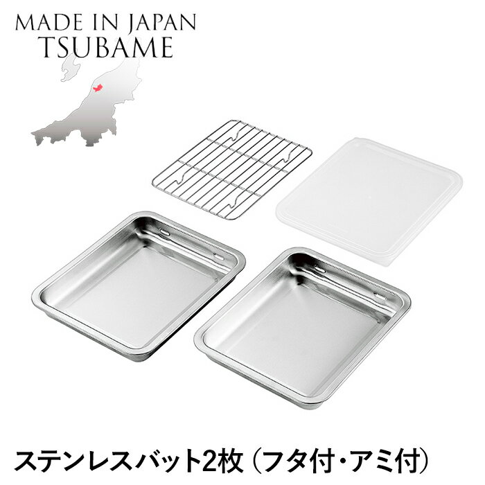 [☆7%offクーポン発行中☆-12/04まで] ステンレスバット2枚 蓋 アミ付き 日本製 ステンレス バット キッチンバット 料理 揚げ物 下ごしらえ 寒天 ゼリー