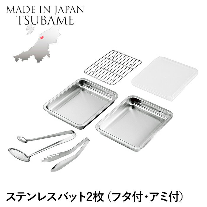 [☆7%offクーポン発行中☆-12/04まで] ステンレスバット2枚 蓋 アミ トング付き 日本製 ステンレス バット キッチンバット 料理 揚げ物 下ごしらえ