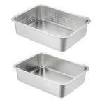 蓋付き 深型 ステンレスバット 角型ザル 各2個セット A-77027 バット ステンレス ザル ざる 調理器具 調理道具 料理 下ごしらえ 揚げ物 製菓 容器 保存容器