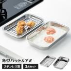 バットセット 浅型バット アミ付き/角バット ステンレス 調理バット 日本製 燕三条 下ごしらえ キッチンバット トレー スクエア 油切り 揚げ物 料理 調理 新生活