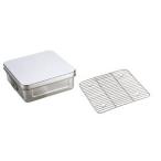 富士ホーロー 角型天ぷら鍋 角型揚げざる セット IH対応 温度計付き 揚げ網 バット付き 天ぷら鍋 ホーロー 揚げザル ミニ 四角 レビュー特典付き