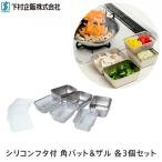 シリコンフタ付 角バット&ザル 各3個セット 9点 43377 下村企販 トレー 調理器具 バット キッチン用品 ステンレス 耐熱 耐冷 保存容器