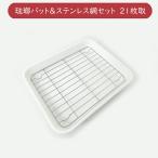 ホーローバット ステンレス網 2点セット バット アミ 琺瑯 丈夫 調理道具 お菓子作り フライ 下ごしらえ 料理 トレー おしゃれ 人気 揚げ物 かわいい レトロ