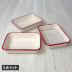 富士ホーロー 揚げ物バット5点セット(蓋付き 金網付き 富士琺瑯 フジ琺瑯 フジホーロー 耐熱 耐冷 オーブン使用可)
