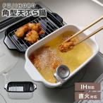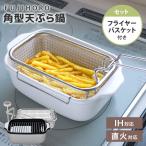 富士ホーロー 角型 天ぷら鍋 フライヤーバスケット付き 揚げざるセット IH 小さい 温度計 揚げ網 バット付き