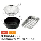 燕熟の技 天ぷら鍋22cm・浅型バット・アミ付き RB-501 日本製 ステンレス製 角バット アミ付き セット 揚げ物 油切り セット 新潟県燕市
