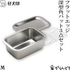 仔犬印 フラットエッジ 深型角バット 3点セット M(深型角バット・トレー・アミ)