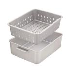 キッチンバット ステンレスバット セット 蓋付き深型ステンレスバット・角型ザルセット A-77027