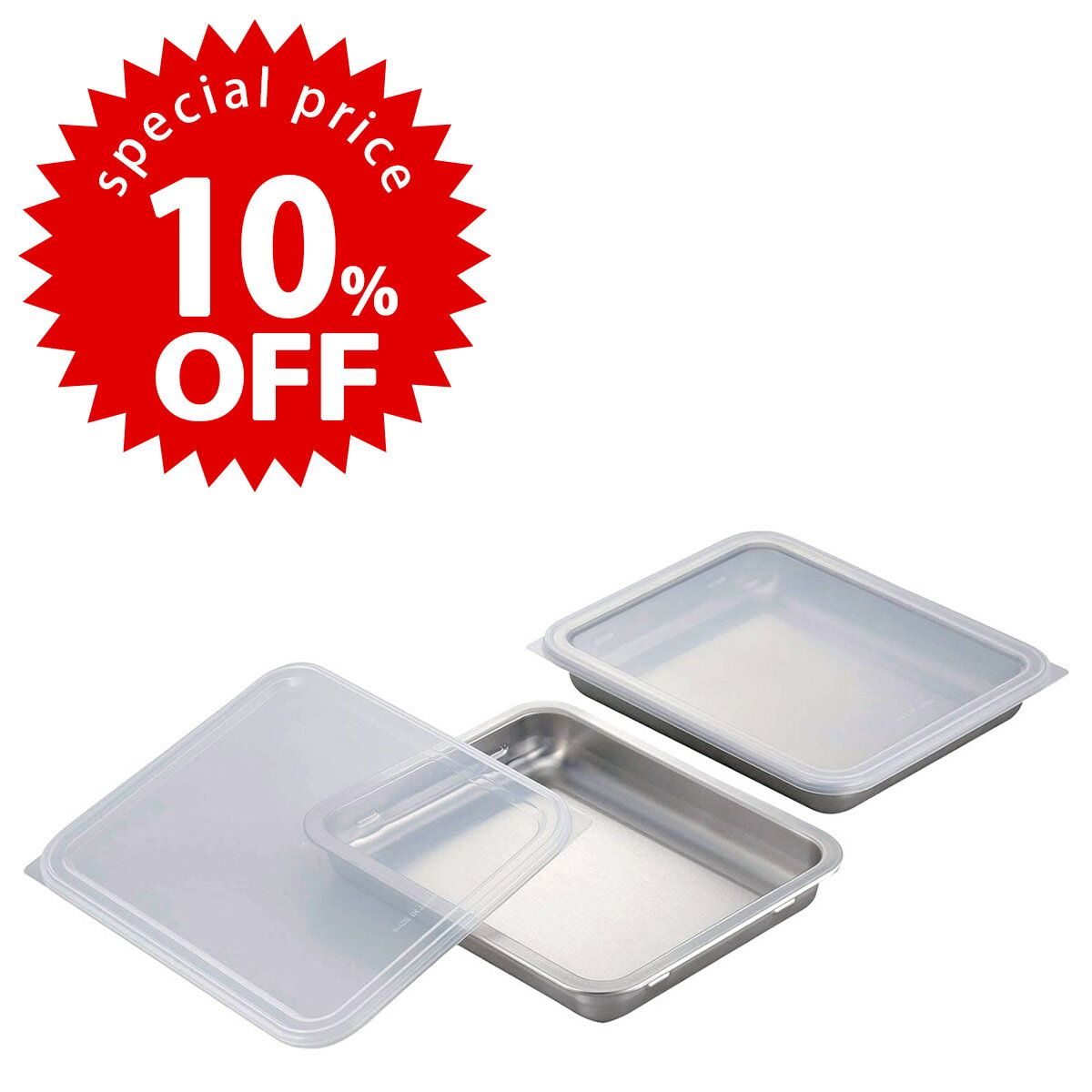 【楽天スーパーSALE10%OFF】バット ステンレス 角型 2枚 蓋付き アミ付き 角バット 重ねて収納 仕込み 下ごしらえ 調理 料理 食材 調理器具 燕製品 日本製