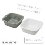 パール金属 深型 バット ザル 2個セット プラスチック製 電子レンジ対応 日本製 ホワイト グリーン キッチンメイト HC-25