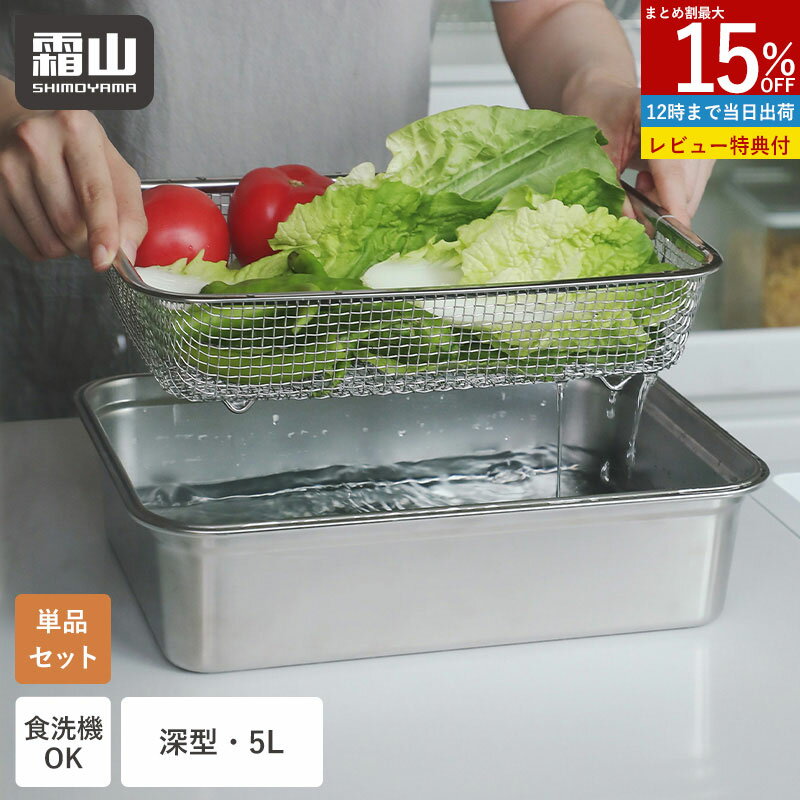 【15%OFF 全品対象】【特典付】角ザル 角バット ザル バット 角型 深型 5L セット 水切り 野菜洗い 果物洗い 野菜 果物 食器洗い 食洗機対応 ざる ステンレス シンク上 省スペース コンパクト 積み重ね 四角 スクエア 吊り下げ 水回り 水切りラック 水切りかご 霜山