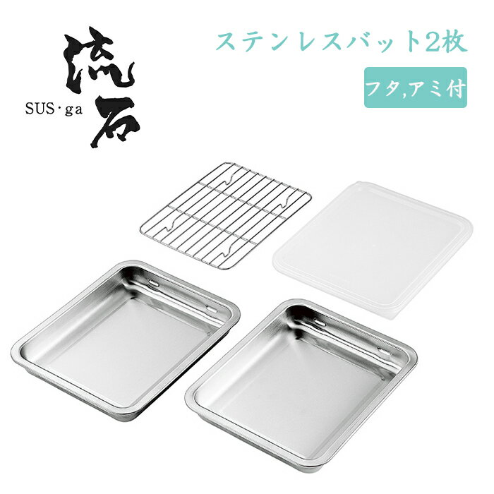 [ブラックフライデー限定 15%OFFクーポン配布中!11/20 20:00〜4時間限定] ステンレスバット 2枚セット アミ 蓋付き 日本製 ステンレス製 角バット 下ごしらえ 揚げ物 キッチンツール キッチンバット