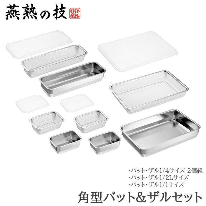 [10%OFF!楽天スーパーSALE 12/4 20:00〜12/11 1:59] バット ザル セット ステンレス 角型 蓋付き 1/4サイズ 各2個 1/2L&1/1サイズ 各1個 日本製 燕三条