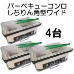 (4台セット) 珪藻土 バーベキューコンロ しちりん角型ワイド 41×24×H17 (火ばさみ、敷台、角アミ付き)