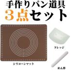手作り クロワッサン 道具 3点セット パンこねマット ガス抜きめん棒 ドレッジ めん台 シリコンマット 初心者 初めて パン作り 送料無料
