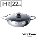 ビタクラフト テーブルパン 22cm ガラス蓋付き NO.1362 浅型 両手鍋 ガス火 IH対応 卓上鍋 浅型鍋 調理器具 ステンレス アルミ 全面2層構造 無水調理