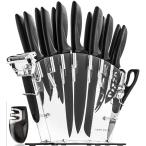 キッチンナイフセット 包丁セット 17点セット キッチンハサミ ピーラー スタンド付 Knife Set with Block Bonus Peeler Scissors Cheese Pizza Knife Home Hero