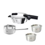 フィスラー 公式 圧力鍋 スターターセット(ビタクイック 3.5L・ガラスフタ・穴あき蒸し器・ステンレスクリーナー、ステンレス製スポンジ) 173026
