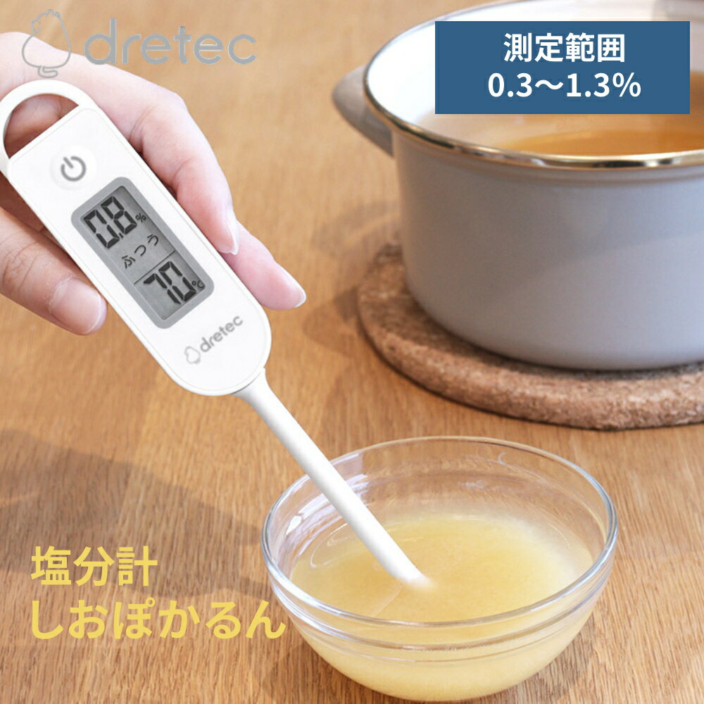 【衝撃の99%OFF☆4日20時〜早い者勝ち!】 ドリテック 塩分濃度計 塩分 計 減塩 EN-908 栄養 管理 しおぽかるん 健康塩分系 塩分測定器 測定 塩 塩分管理 はかり 塩分管理計 フック付 簡単 ホワイト 5〜80℃ 壁掛け 0.3〜1.5% 濃度 温度計 食事ケア 電子