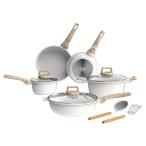 【並行輸入品】GiPP 鍋とフライパンセット ノンスティック10個 ホワイト御影石 IHキッチン調理器具セット ノンスティック調理セット 作業/