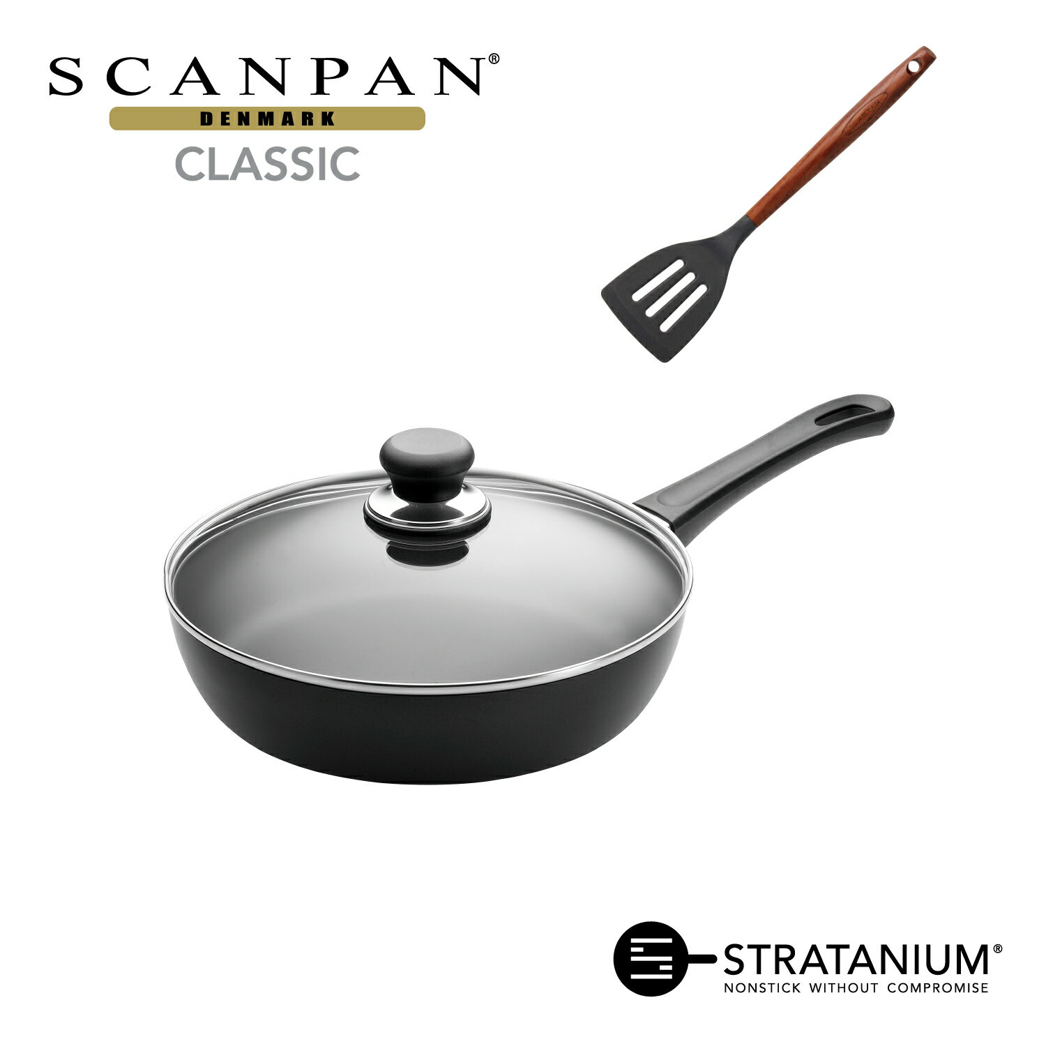 ★期間限定シリコンフライ返しプレゼント★【メーカー公式】スキャンパン Classic シリーズ ソテーパン 26cm (蓋付) 深型フライパン 炒め物 煮物 環境に配慮 オーブン調理 ノンスティック 安全なフライパン フッ素加工 SCANPAN デンマーク STRATANIUM