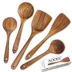 AOOSY キッチンツール5点セット 天然アカシア木製 接着剤なし天然木製 しゃもじ フライ返し ターナー スキンマー おたま スープスプーン しゃくし さじ 調理器具