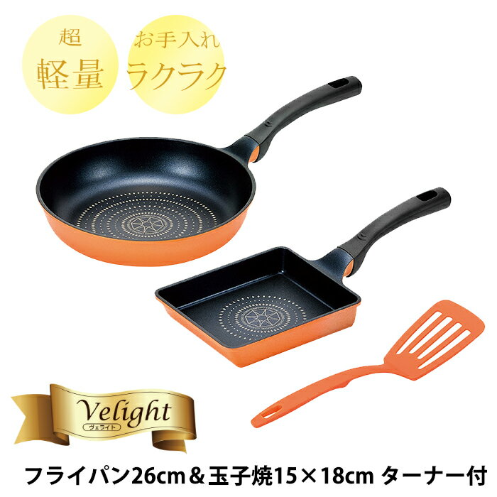 【期間限定 10%OFF!!☆楽天スーパーSALE】 フライパン26cm 玉子焼15×18cm ターナー付 フライパン セット 軽量 ガス火専用 ガス ダイヤモンドコーティング 卵焼き お弁当 ガス おしゃれ