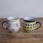 数量限定 特価品 フルーツ柄 2個セット ポーリッシュポタリー ポーランド 食器 マグカップ りんご さくらんぼ 200ml K67-ALC26 K67-ALC83 黄色 ネイビー