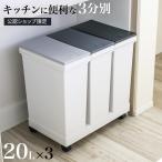 ゴミ箱 20L×3個 棚下で使える 両開き 3分別ワゴン プッシュダスト 袋止め付き ( ごみ箱 20リットル 3個 棚下 手で開ける ふた付き 便利 シンプル 日本製 )