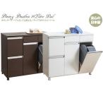 ダストボックス ごみ箱 ゴミ分別 キッチンカウンター ワゴン レンジラック 収納棚 ペール2個付 ホワイト ブラウン KR-0217