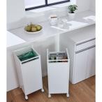 ダストボックス 18L 2分別 キャスター付き ゴミ箱 分別ゴミ箱 ごみ入れ おしゃれ ふた付き 2段 9L×2 斜め 白 袋 見えない スリム 縦型 キッチン 薄型 nj-0399