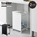 タワー tower 山崎実業 / 蓋付き目隠し分別ダストワゴン 2分別 「送料無料」/ ゴミ箱 分別ペール ふた付き レジ袋 かけるだけ 2分別