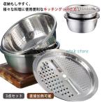 3点セット 野菜カッター 千切り スライサー ステンレス製 水切り みじん切り 米とぎ ザル 直接加熱可能 果物洗い ボウル おろし金セット キッチン