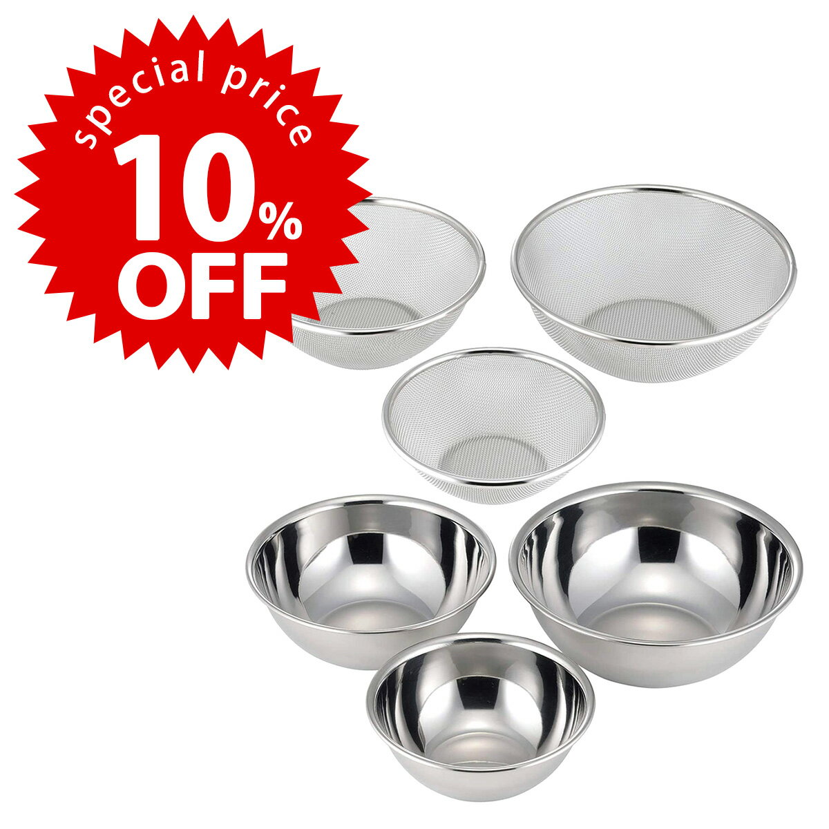 【楽天スーパーSALE10%OFF】ステンレス製 メッシュザル19cm ボウル18cmセット ザル 丸型 水切り 丈夫 頑丈 キッチン用品 キッチングッズ ボウル